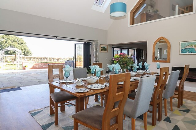 Upon entering the property, you will be greeted by a spacious open-plan living area, complete with a contemporary electric range oven and hob, microwave, fridge/freezer, and dishwasher. The sitting space boasts a Smart TV and soundbar with Bluetooth, perfect for entertaining the group, while the woodburning stove adds a warm touch.