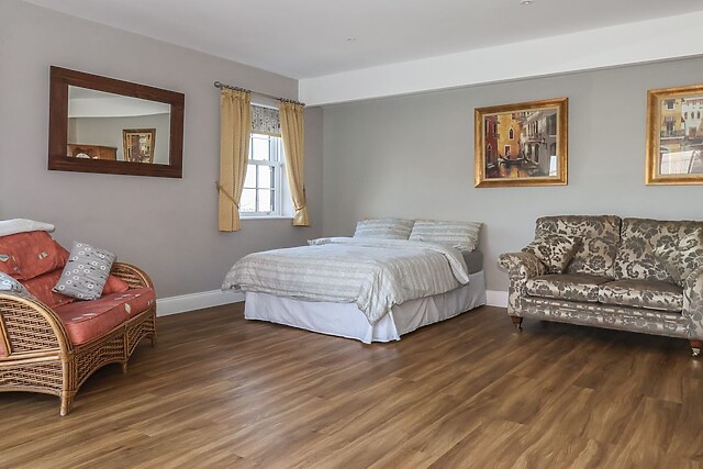 On the ground floor, you will find a family bedroom with two double beds with a further three double bedrooms on the first-floor, two of which benefit from en-suite facilities with walk-in showers, basins, and WCs, with one also featuring a heated towel rail and a TV. A further twin bedroom can also be found on this floor.