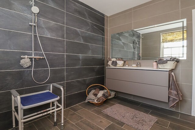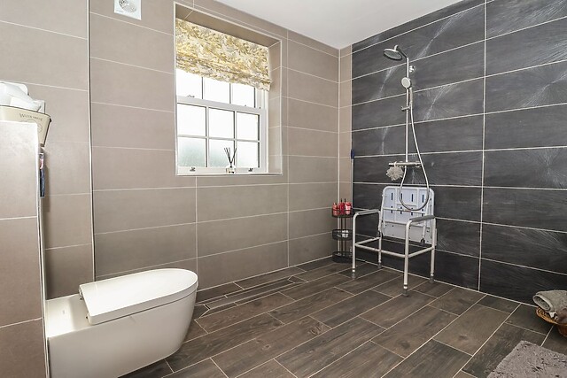The second floor hosts a double bedroom with an en-suite, complete with a walk-in shower, basin, and WC. A family bathroom with a bath, shower over, basin, and WC, as well as a ground-floor wet room with a walk-in shower, basin, and WC, serve the remaining bedrooms, ensuring there is plenty of space for everyone to prepare for their day.