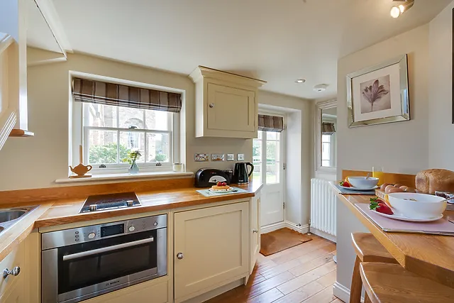 Although compact, the kitchen is fully equipped for your stay, including a breakfast bar area. The garden provides a peaceful setting for al fresco dining or simply soaking up the surroundings.
