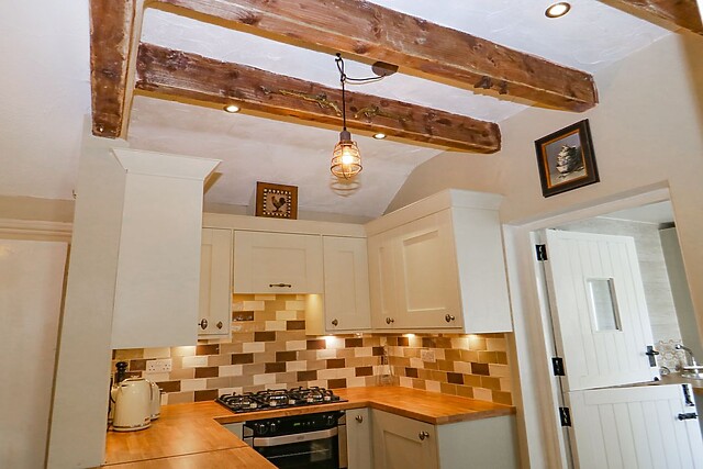The contemporary country-style kitchen is beautifully styled with a stunning wooden beamed ceiling and exposed wooden flooring, with all the appliances and amenities you could wish for during your stay, even a two seater breakfast bar. A ground-floor shower room with electric power shower is a great way to prepare for each day and a convenient utility room that opens into the enclosed courtyard, completes the layout of this floor of the property.