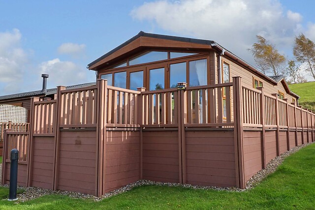 The bathroom is fitted with a bath and an overhead shower, perfect for a refreshing start to your day or a relaxing soak in the evening. Step outside onto the enclosed wraparound decking, where you can unwind with a good book or simply enjoy the calmness of your surroundings.