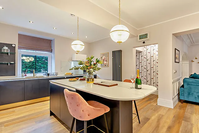 Steeped in history, this 19th-century property boasts a beautifully eclectic interior. Enjoy plush upholstery, rich jewel tones, vibrant wallpaper, and elegant original features.