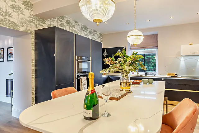 Come together in the wonderfully sociable kitchen/diner. Cook in the sleek handless kitchen or perch at the marble-topped island to scoff some pre-dinner nibbles.