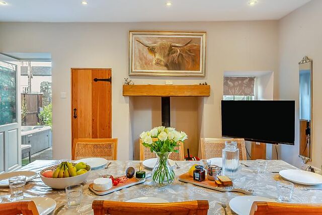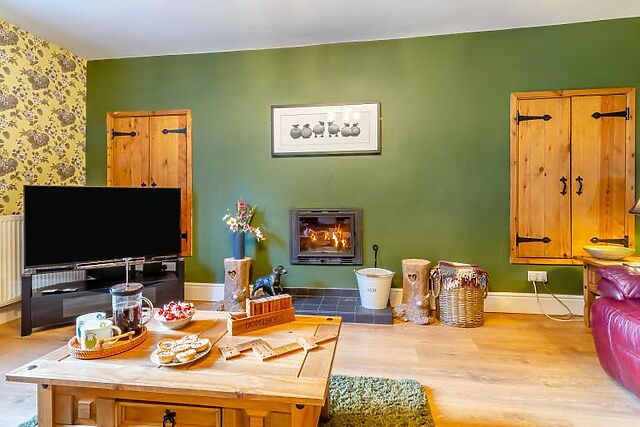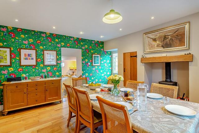 Slumber on the sofa in front of the wood burner after a day of sightseeing in the local area. There’s a large kitchen to prepare meals for the group, then perhaps you’ll want to linger a while longer in the elegant dining room complete with a Smart TV and a second wood burner.