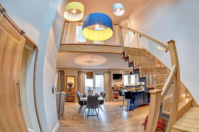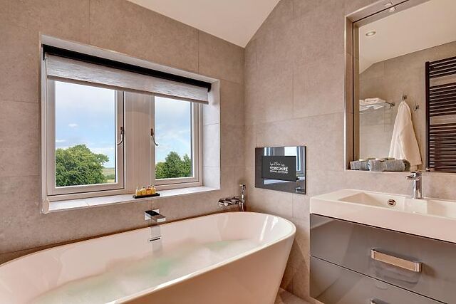 Each bedroom comes with a Smart TV, and the master en-suite even boasts an Aquavision TV in the bath. The ground floor includes a king-size bedroom with step-free access and an en-suite shower room.