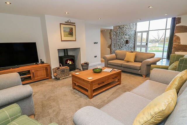 French doors lead directly out to the patio area, where you can enjoy meals in the fresh air or unwind in the private hot tub. The well-equipped kitchen and dining area has everything you need to prepare hearty meals, while thoughtful touches throughout the cottage include TVs in each bedroom and stylish furnishings.