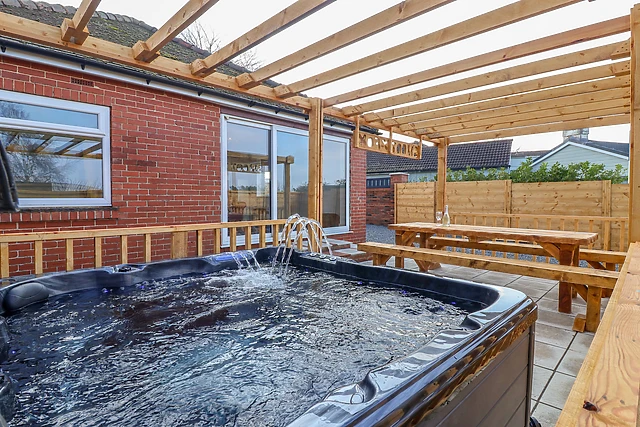 Two further bedrooms await, serviced by a bathroom with the option of a warm shower or a soak in the tub, choose between a king-size with a Smart TV and a twin. The enclosed garden houses furniture to encourage guests to dine alfresco in the sunshine, with a glass of their favourite beverage, before taking an indulgent dip in the hot tub.