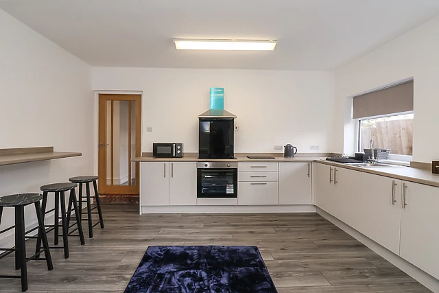 Guests can settle down and plan the day ahead of them in the open-plan sitting and dining room and indulge in hearty meals at the table, prepared using the ample amenities available in the nearby kitchen. When it's time to retire for some well-deserved rest, the master bedroom offers a double bed, en suite shower room and a Smart TV to drift away in comfort to your favourite shows.