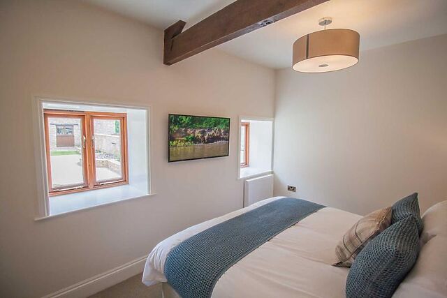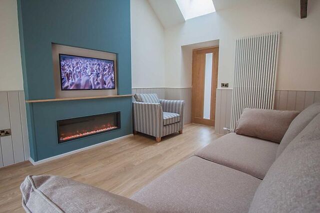 Open the French doors on hot days or switch on the wood burner-style electric fire to bring a glow to the room in winter. When you are ready to retire for the night, head down the hallway to your bedrooms, all of which have something of a boutique hotel finish to them.