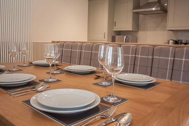 Dine at the lovely wooden table in here or outside in the pretty garden. The lounge area has comfortable seating where you can chat, play games or stream your favourite shows via the Smart TV.