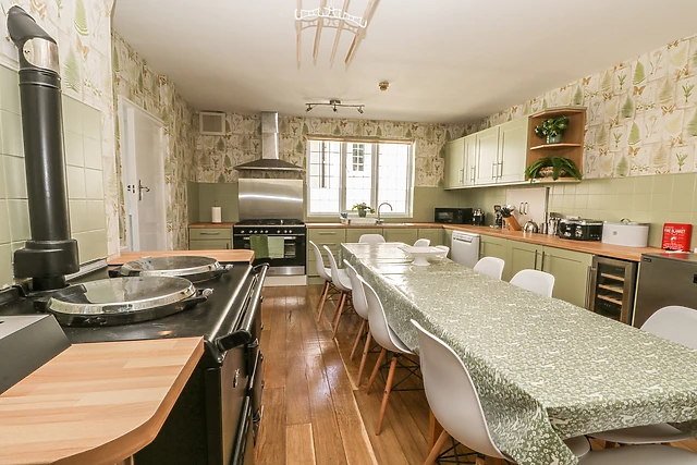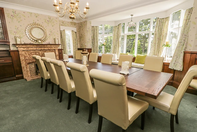 These wonderful period features of the building can be seen in parts throughout, from the grand fireplace and oak wood panelling in the formal dining room to the large bay windows overlooking the gardens outside. For entertainment during your stay, head to the converted garage and into the games and cinema room, and enjoy some quality leisure time.