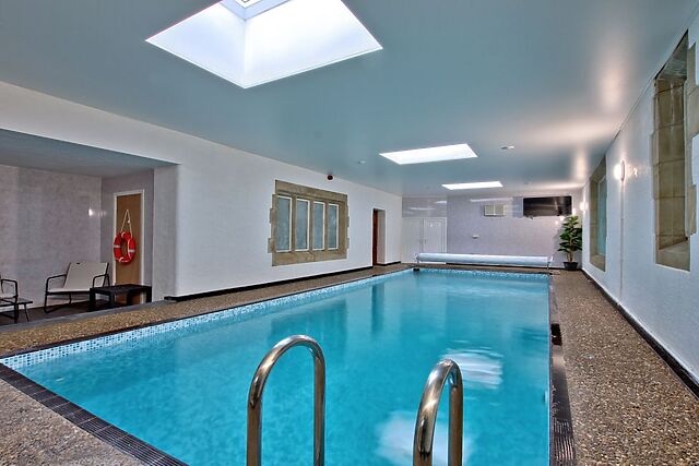 Located in the centre of the property is a large indoor swimming pool with a sauna and changing rooms. Overlooking the lawned garden is a stunning games room featuring a small stage area, full-size pool table and full-size competition table tennis table- ideal for group games and competitions.