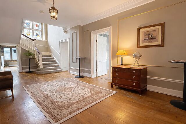 The grand entrance hall gives you a taste of things to come, with beautiful stained-glass windows and a glittering chandelier. Live to the manner born in splendid, light-filled rooms with open fires in the lounge and bar room.