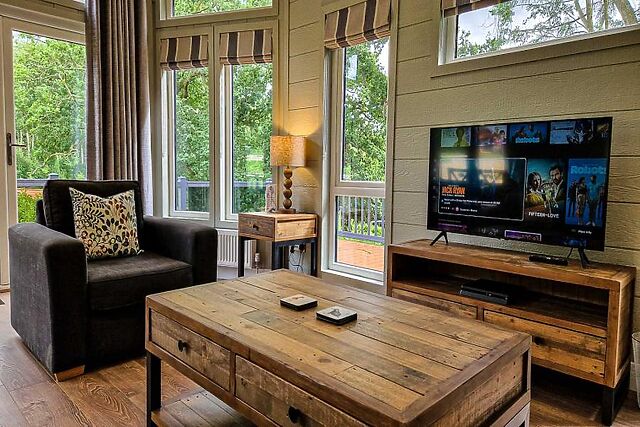 Head inside to discover a beautifully designed self-catering retreat, where modern furnishings and thoughtful touches create a welcoming stay. Floor-to-ceiling windows in the open-plan living area frame stunning views across open countryside, flooding the space with natural light.