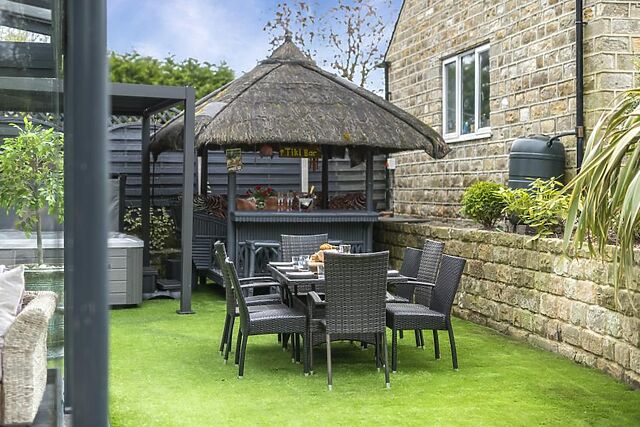 A sparkling family bathroom completes the layout. Outside, enjoy long summer evenings in the heated tiki bar, tuck into pizzas fresh from the oven, and relax in the private hot tub.