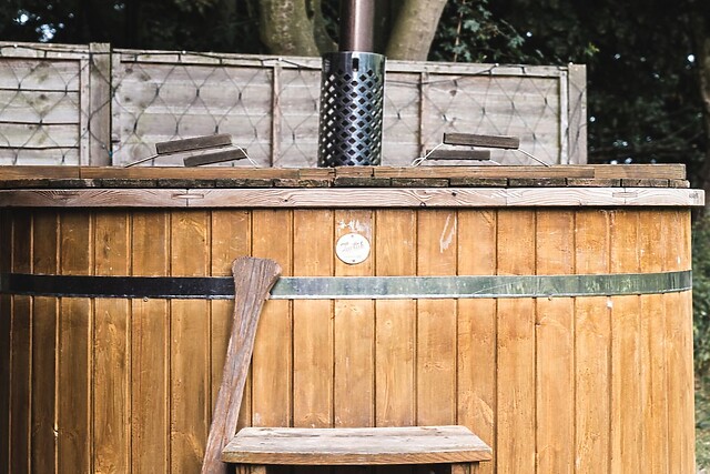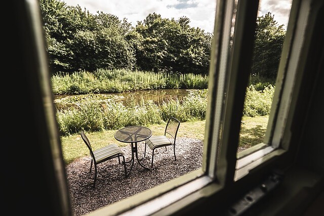 Venture outside to the serene grounds, where you can enjoy the tranquil sounds of the mature pond, teeming with wildlife and plants. For a unique outdoor experience, take a soothing dip in the eco-friendly log burning hot tub, and let your worries melt away under the starlit sky.