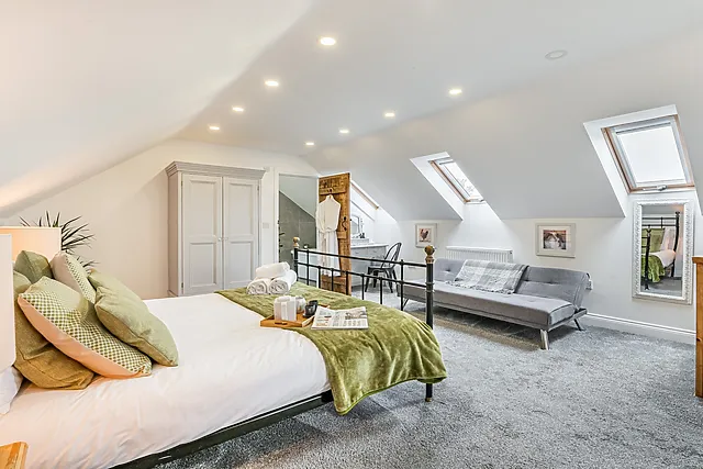 The cottage boasts a sumptuous super-king-size bedroom with an en-suite bathroom, featuring a double-ended bath and a double shower to pamper yourself.