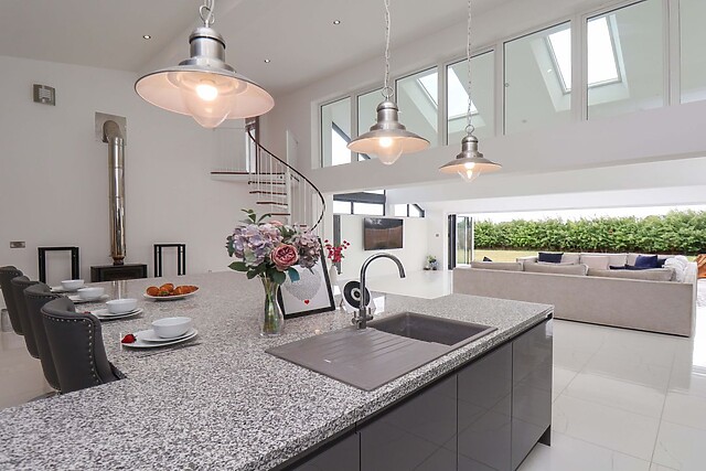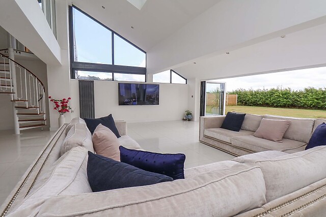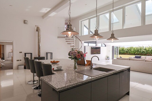 Upon entering the property, you will be greeted by a simply outstanding open-plan living area, which has a U shaped sofa for everyone to sink into to become accustomed to the wonderful surroundings. This is complete with a well-equipped kitchen for preparing delightful meals as it has Neff twin hide and slide ovens, a ceramic hob and a microwave/oven grill to help you cook up something delicious.