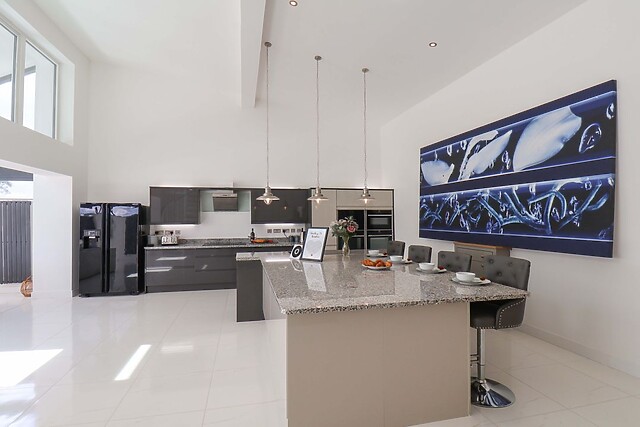 An integral coffee machine awaits you to ease into the morning with a cup and blend to suit your choice. Plate it up on the kitchen island dining area to share some laughs whilst you eat together.