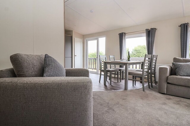 Step inside this single-storey retreat to discover a bright and spacious open-plan living area. Here, you can sink into one of the two inviting sofas, switch on the Smart TV, or simply enjoy the warmth of the fire as you spend time together.