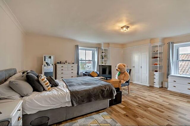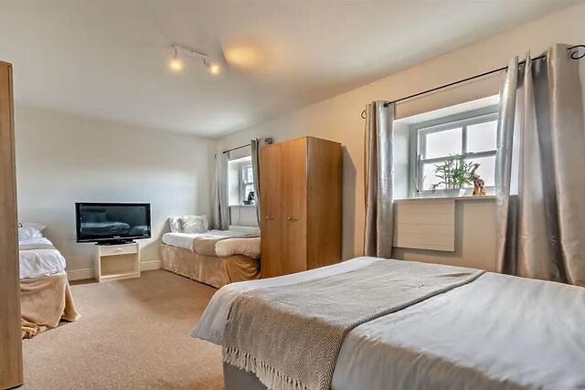 Your remaining bedrooms and bathrooms are spread across the top two storeys of the house. On the first floor, there is a double bedroom, a king-size bedroom with a smart TV, and an excellent family room with a double bed and a twin set.