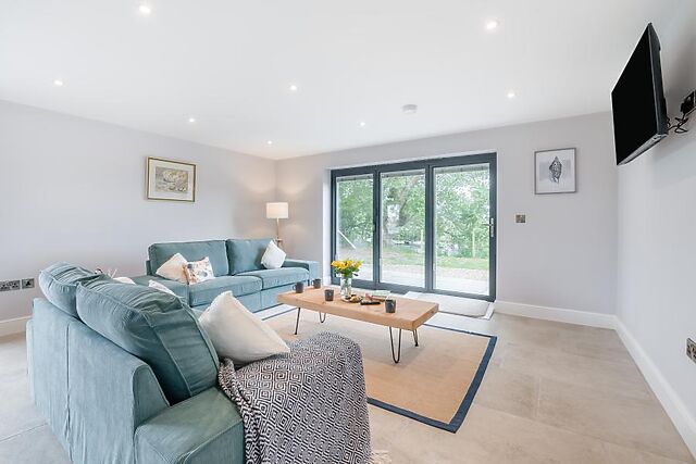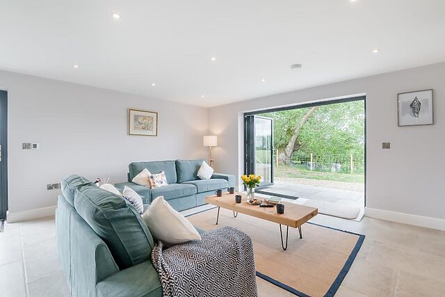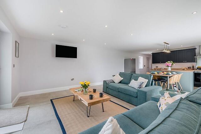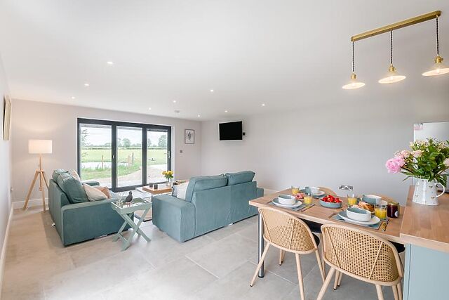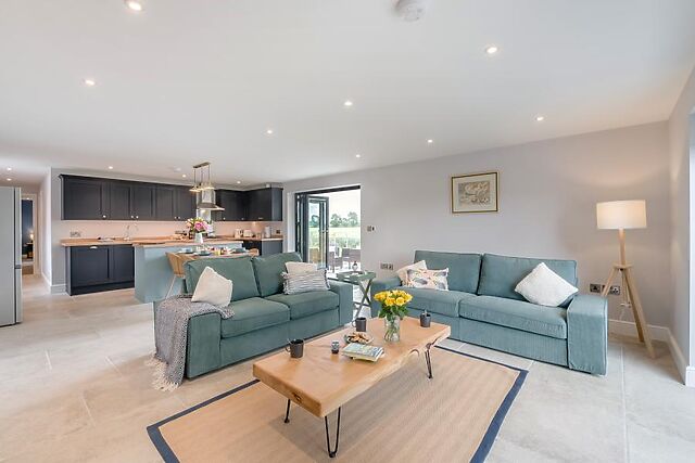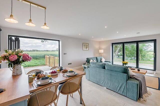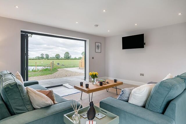 At the heart of the stylish property is an open-plan lounge/kitchen/diner, with bi-folding doors on two sides to maximise the incredible views. Relax in here on one of the two sofas to play a family game, watch the Smart TV or simply gaze out at your surroundings.