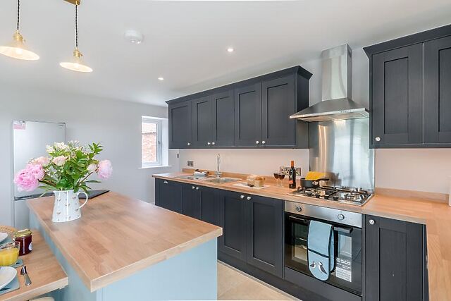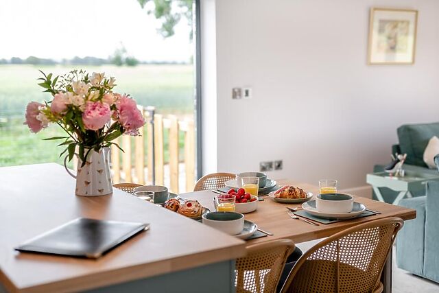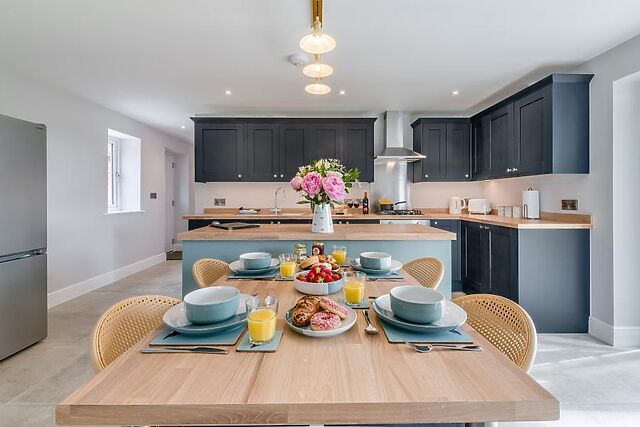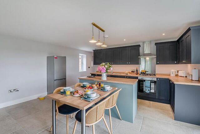 Open up both sets of doors on warm days to bring the gorgeous outside in. The modern kitchen area, which features a central island and dining space, provides ample room for your food storage and also includes everything you are likely to require to help you cater for yourselves during your stay.