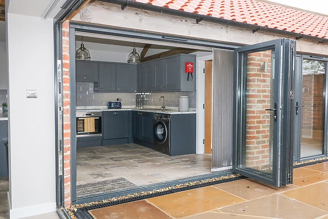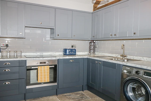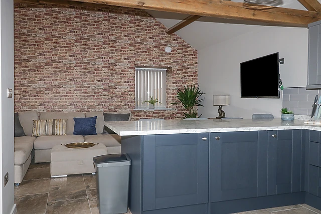 The heart of the cottage is an open-plan living space, where you can unwind on the plush corner sofa after a day of exploration, or prepare delicious meals in the well-appointed kitchen.