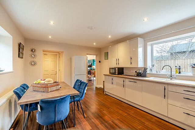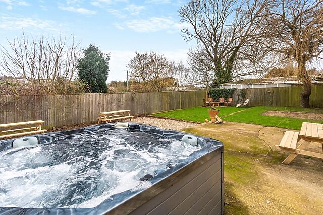 Spill out into the garden to dine in the fresh air or bubble in the hot tub while listening to music through the Bluetooth speaker. There is parking here for at least three cars.