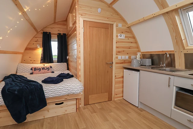 Settled amongst the rolling fields of Little Kelk near Bridlington, East Riding of Yorkshire is Parliament. This fabulous glamping pod benefits from a fabulous location with easy access to the breath-taking county’s coast and the fun-filled North York Moors National Park, it also boasts a welcoming, studio-style interior and a private garden evening perfect for relaxing evenings; a wonderful choice for couples, small families or friends looking to holiday in Yorkshire.