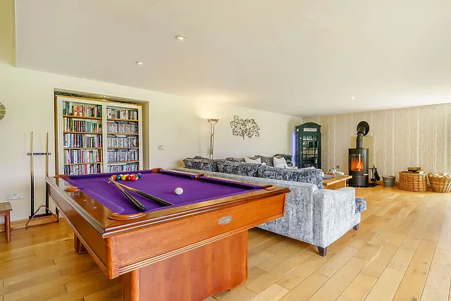 Inside, you'll find a spacious open-plan living area complete with a wood burner, SkyTV, and a selection of entertainment options, including a pool table. The modern kitchen is fully equipped to cater to your culinary needs, making it a joy to prepare meals for your group.