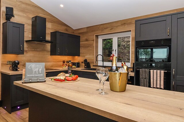 The well-appointed kitchen has everything you need to whip up delicious meals, which can be shared at the spacious dining table. Outside, the enclosed front garden offers a private escape, featuring a lush lawn, a decked area with outdoor seating for alfresco dining, and a tempting hot tub, ideal for soaking away the day beneath a starlit sky.