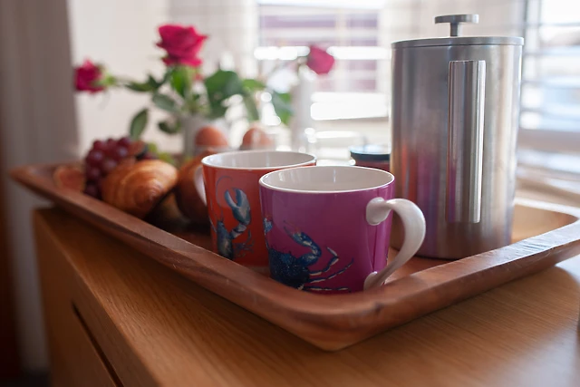 The cottage comfortably sleeps up to four guests, offering two beautifully appointed bedrooms, each equipped with a Smart TV.