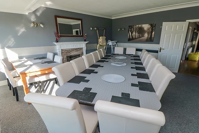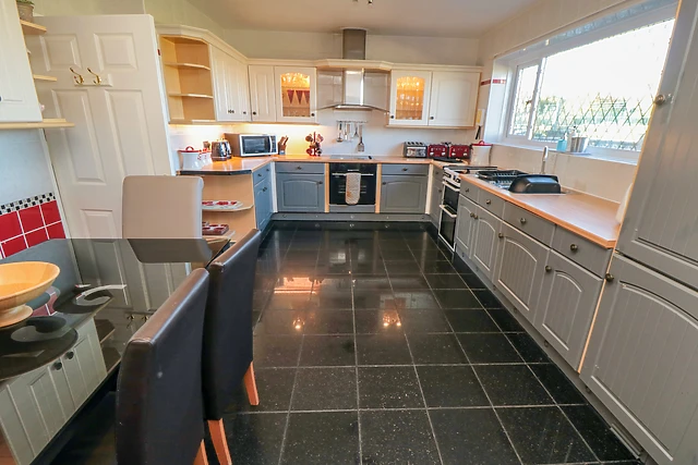 The contemporary and sociable kitchen boasts granite flooring, neon skirting lights and a full range of equipment, ideal for preparing family meals. With a dining table for six, guests can sit and chat over coffee at breakfast, whilst planning the dayÂ’s activities.