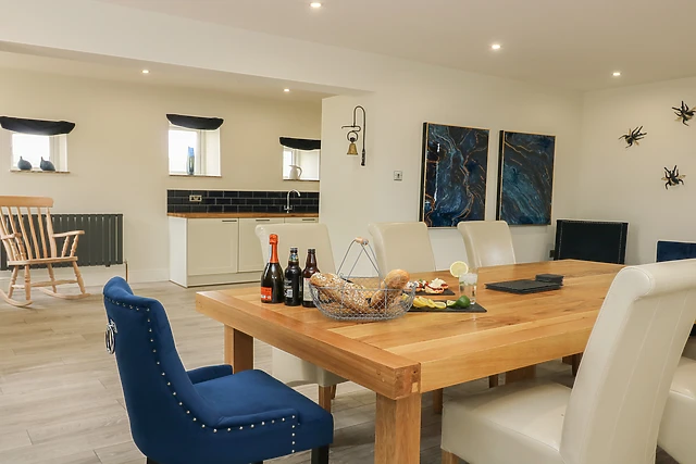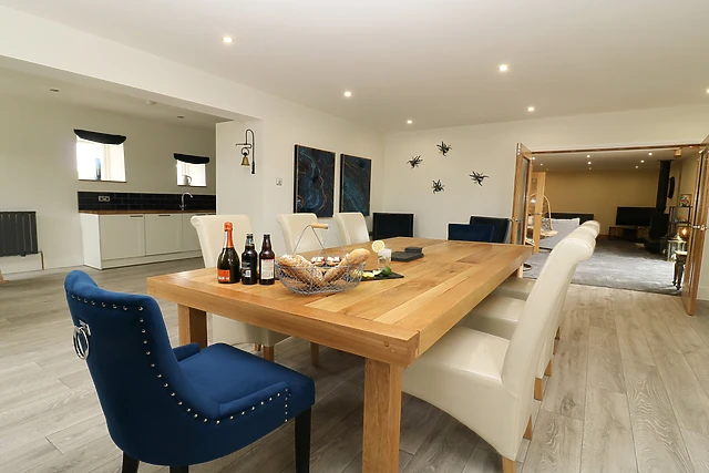 The interior boasts a stylish fusion of modern amenities and rustic charm, with exposed timber frames and a cosy woodburning stove. Relax in the plush sitting room, complete with a Smart TV, or indulge in a sumptuous meal in the spacious kitchen/diner.
