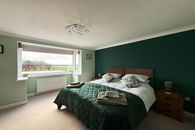The well-equipped kitchen has everything you need to rustle up a hearty Yorkshire meal, while the separate dining room provides a sociable space to enjoy meals and plan tomorrow’s adventures. Back through the entrance hallway is a blissful super-king-size zip-and-link bedroom with exceptional views of the farm and garden through a gorgeous picture window, alongside a contemporary bathroom with shower attachment over the bath.
