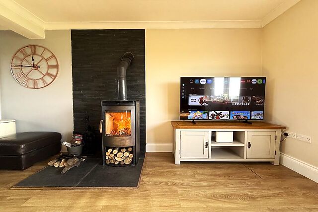Kick off your shoes and hang up your coat in the spacious boot room, the perfect spot for storing all your outdoor gear, with a handy utility room with washer/dryer and microwave adjacent. Lead the way into the spacious hub of the house, the open-plan lounge/kitchen, where the warmth of a roaring wood burner and views over the garden create a welcoming atmosphere.