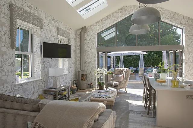 Relax in the spacious open-plan lounge, complete with a warming wood burner and TV, or prepare a feast in the stylish kitchen, equipped with modern appliances. The property also features a snug, a perfect haven for quiet moments.