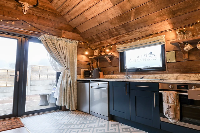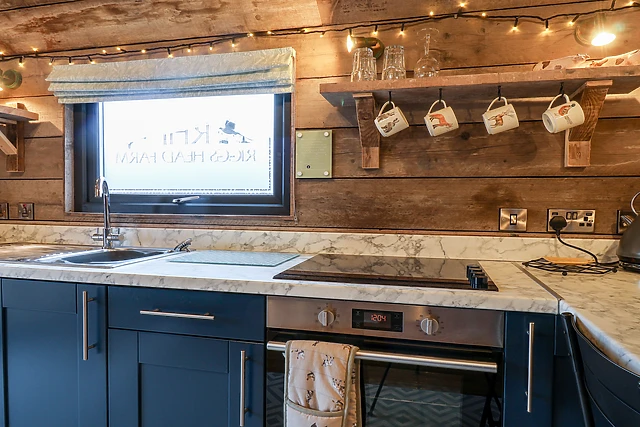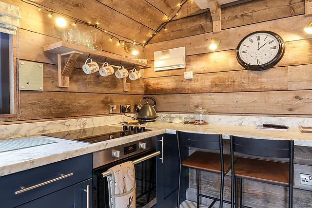 After a day of walking, kick off your walking boots and step into the open-plan living area, collapsing on the sofa after you get the woodburner going. There is a dining area for two, where you can enjoy a romantic dinner prepared in the well-appointed kitchen, housing all the necessities for a short break.