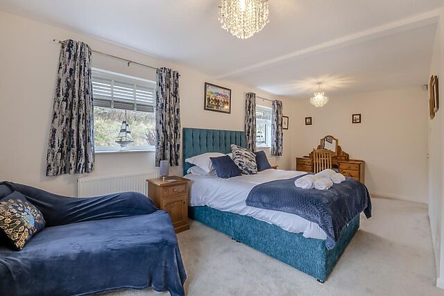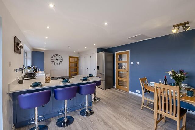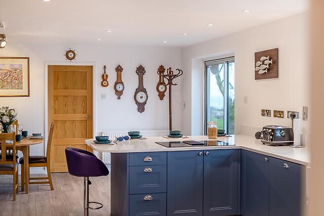 Relax on the chic Italian sofas as you watch the Smart TV and enjoy the warmth of the wood burner. A WC, family bathroom and three of your bedrooms are also within the main cottage.