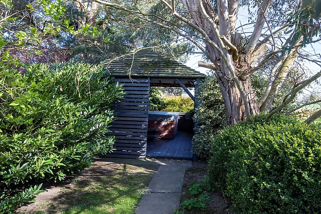 Step outside to find a private garden with a bubbling hot tub, the ultimate luxury for relaxation.