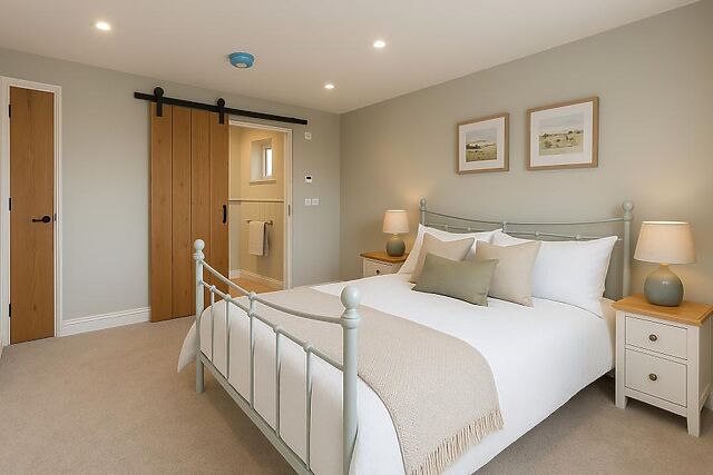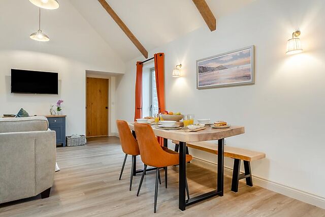 Snuggle up by the glow of the wood burner and watch your favourite shows on the Smart TV or listen to some chilled tunes on the Bluetooth speaker before you head off to bed. The king-size bedroom is spacious and designed with fresh colours for a sublime night's rest.