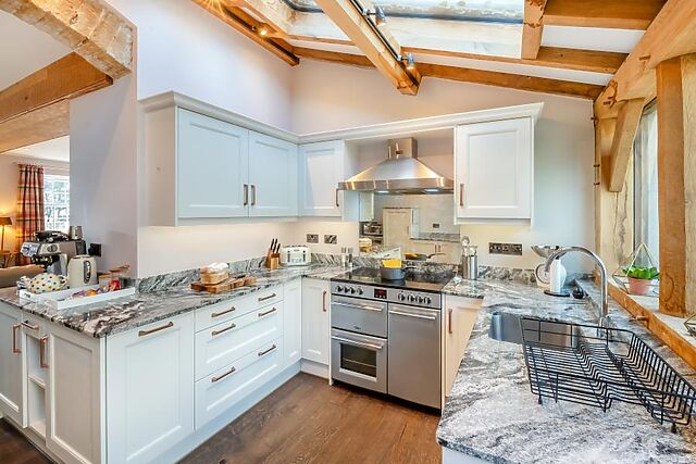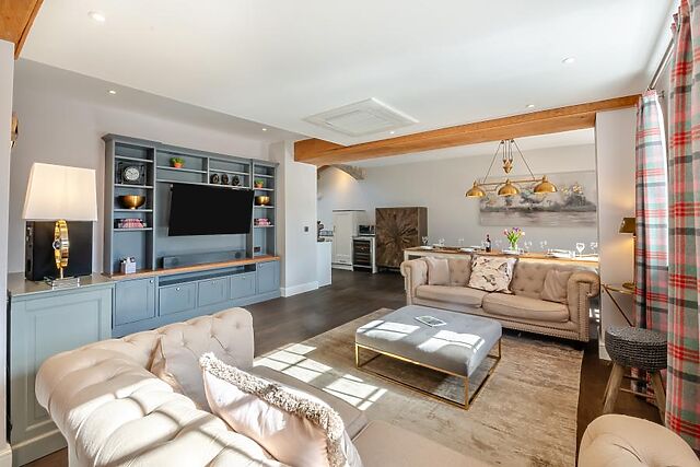 Large windows overlook the garden, while stylish ceiling beams add warmth and character. There's also a separate snug giving the group space to spread out.