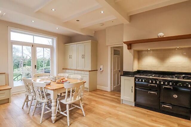 Culinary enthusiasts will delight in the impressive kitchen, equipped with a Range cooker, perfect for preparing group meals to be enjoyed in the separate dining room.