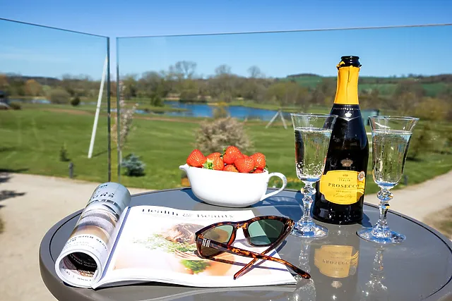 Step outside onto the glass-fronted balcony to relax in the hot tub, or enjoy al fresco dining at the picnic bench amidst the rural estate. With its waterside views and proximity to a delightful village pub, this property is perfect for those seeking luxury and romance.