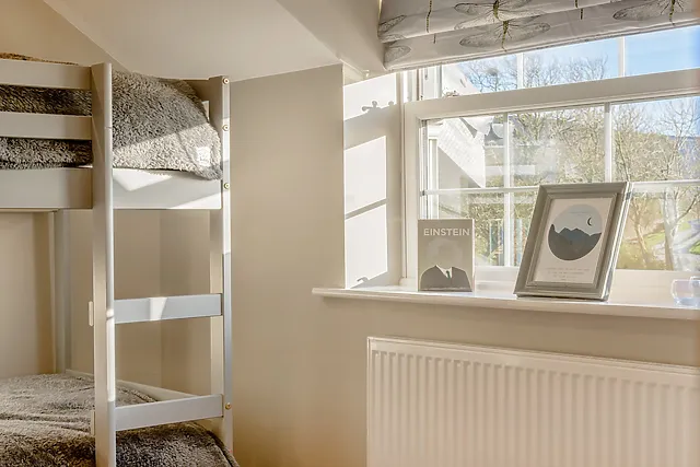 The cottage boasts three bedrooms, including two king-size rooms and one bunk bedroom, comfortably accommodating six guests.