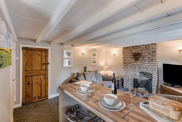 Let yourselves in, make your way up the stairs, and you’ll be in accommodation that brings the old and the new together with ease. At the heart of the holiday home is an open-plan lounge/kitchen/diner, with a beamed ceiling and exposed brick chimney breast, a lovely place to enjoy downtime together between exciting excursions.