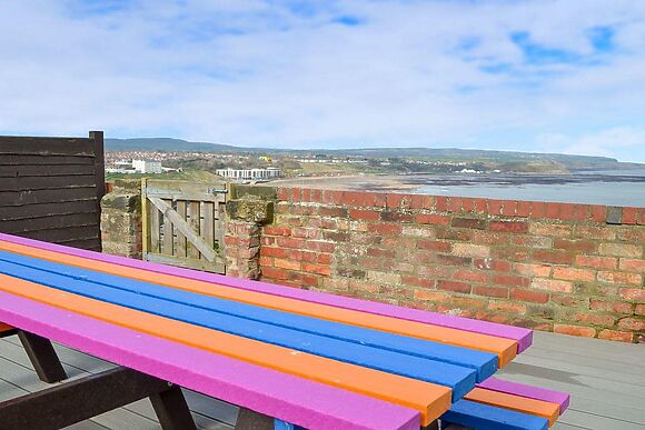 Scarborough is Britain's original seaside resort. Shops and pubs are 220 yards away. The beach is a 10-minute walk and the town centre is just 5 minutes on foot. The North Bay, Old Town and castle are all walkable. The clifftop garden has 180-degree views across North Bay and a private hot tub for six.