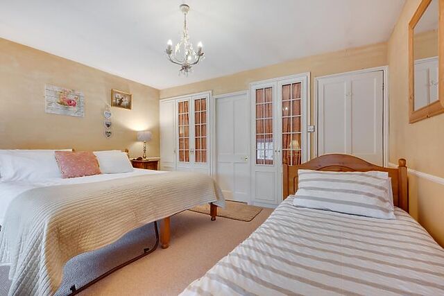 When it’s time to rest your head, you’ll find two bedrooms upstairs, a double plus a triple room with a king-size zip-and-link bed and an additional single, offering flexible accommodation. A family bathroom plus an en-suite bathroom takes care of all practicalities.